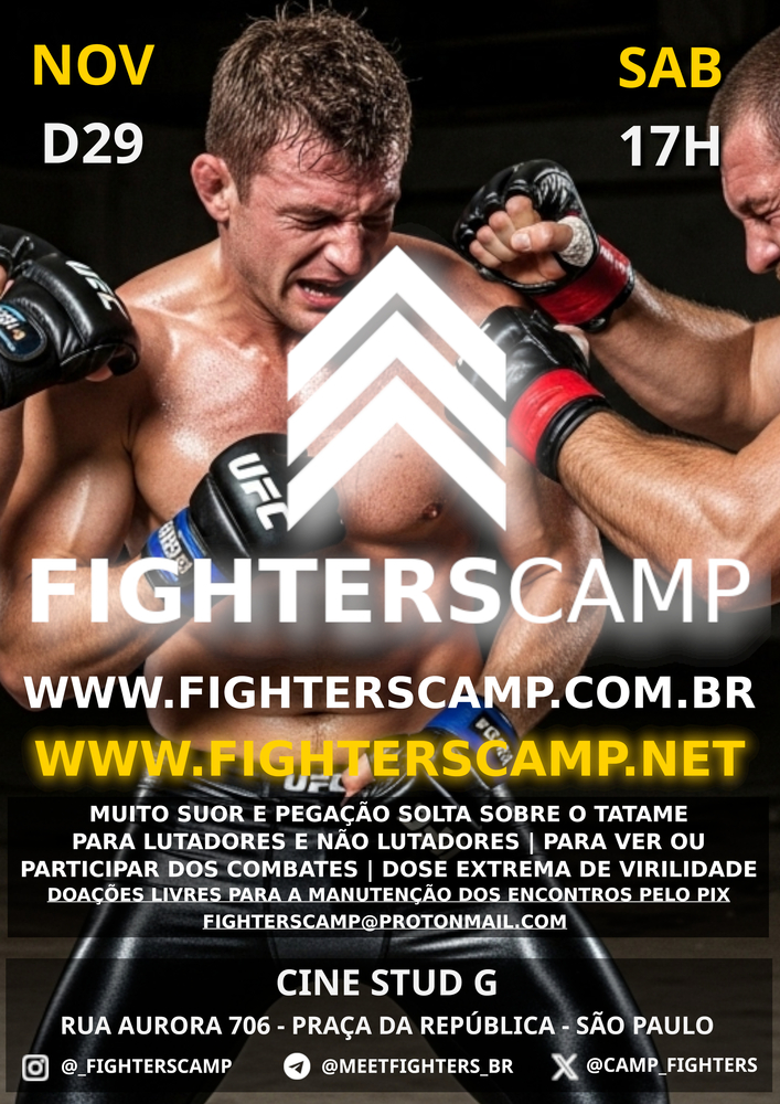 Aos interessados em conteúdos da comunidade, siga a primeira plataforma brasileira de compartilhamento de conteúdos de lutas e de artes marciais underground, inteiramente focada nos interesses e necessidades do público brasileiro. Ela pode ser conferida em www.fighterscamp.net.